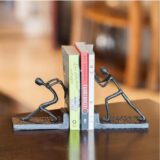 Bookends do more than just keep your books upright—they can also serve as striking décor pieces that reflect your style and personality. The Danya B. bookend set goes beyond function by offering a bold and artistic touch to your home or office shelves. Featuring two figures pushing against your collection of books, this set adds a sense of motion and strength that draws attention while sparking curiosity. Each piece is expertly handcrafted from durable iron and finished in a tarnish-proof bronze coating, which gives it a subtle, warm gold patina that complements any color palette. Whether placed on a study desk, in a reading nook, or on a living room shelf, these bookends are as visually engaging as they are practical. Their timeless, sculptural appeal makes them a wonderful gift for book lovers, art enthusiasts, or anyone looking to elevate their interior space. Make a statement that speaks volumes—both literally and figuratively—with this elegant and enduring bookend set from Danya B.